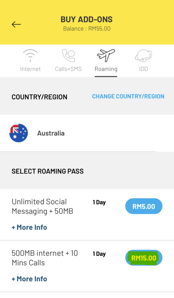 - 5. Choose the Roaming Pass and Tap on the Price Button.